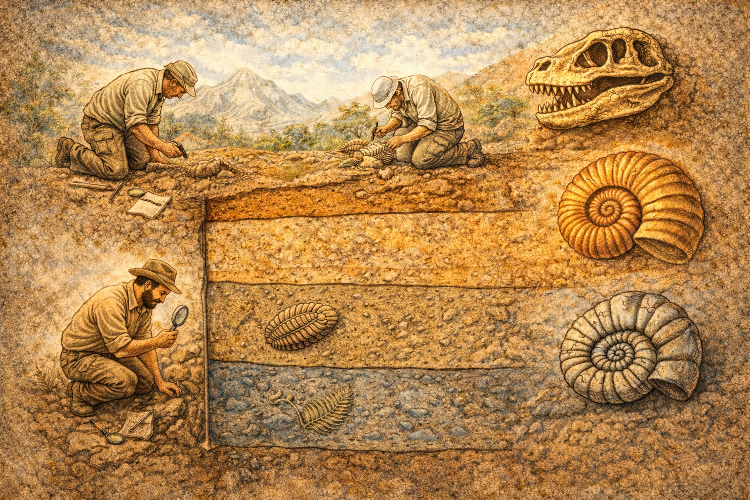 Stratigrafi er studiet av lagdelte sedimenter i jordskorpen. Grunnprinsippet er at nedre lag normalt er eldre enn øvre lag, og at fossiler i lagene kan brukes til å forstå rekkefølgen av hendelser i jordens historie.